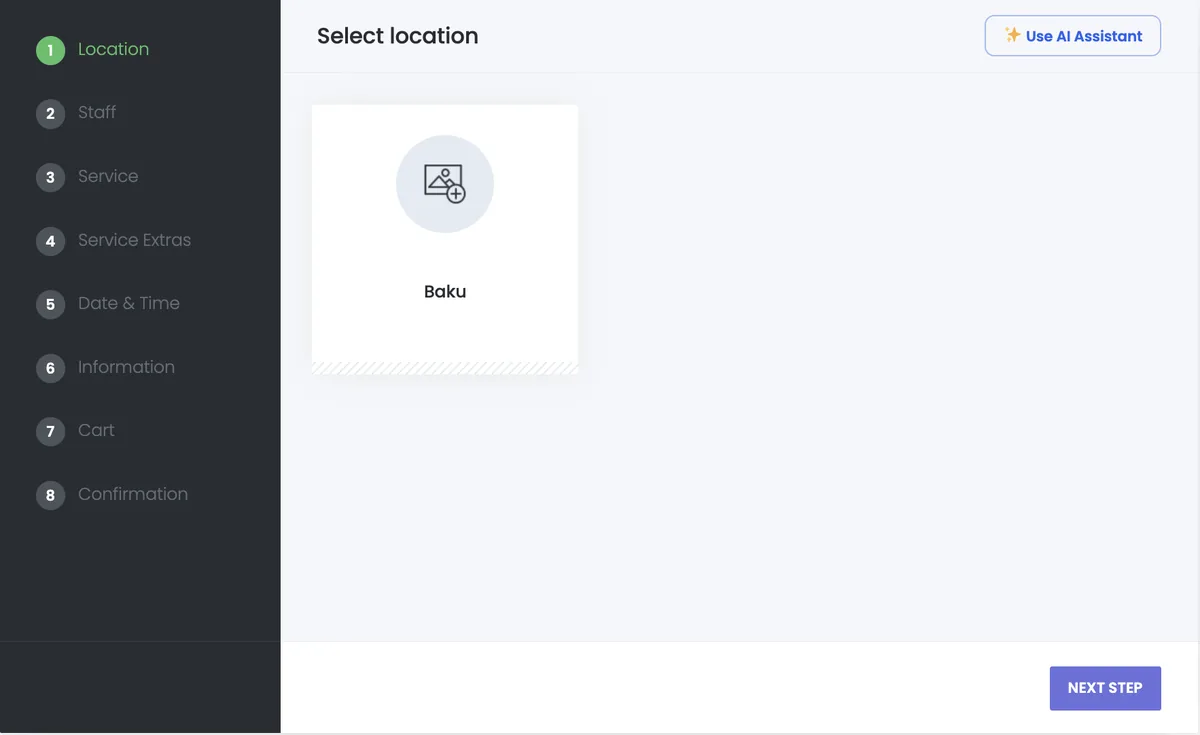 On any page where your Booknetic booking panel appears, customers see a button labeled "Use AI Assistant." One click replaces the traditional form with a conversational chat interface.